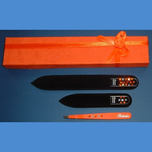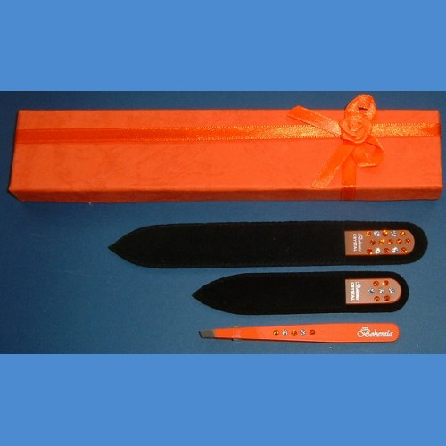 BOHEMIA dárková sada skleněných pilníků Swarovski 2SW +pinzeta oranžová motiv Pinzety a sady