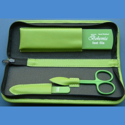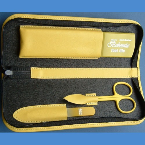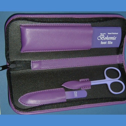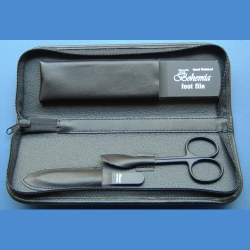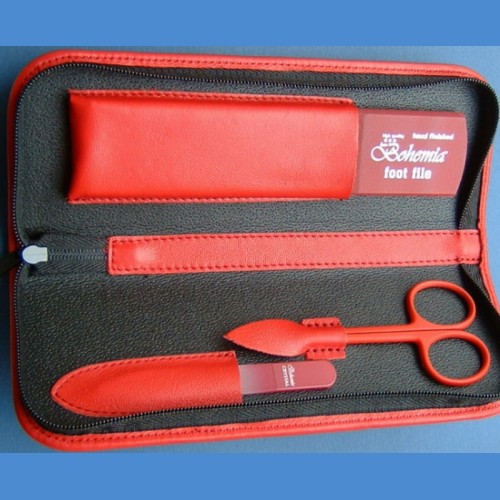 Vše je vloženo do koženého pouzdra z italské kůže. Rozměr manikúry 200x70mm.