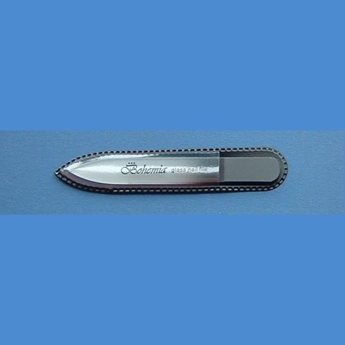 Skleněný pilník na nehty délky 90mm,tloušťky 2mm. Včetně PVC obalu s potiskem Bohemia.