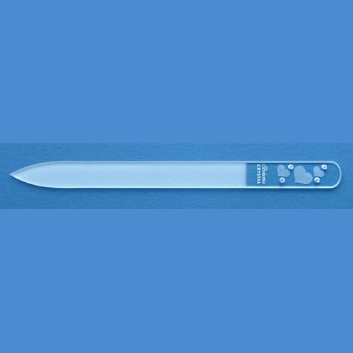 Skleněný pilník na nehty pískovaný Swarovski střední 140/2mm, vzor srdíčka | BOHEMIA